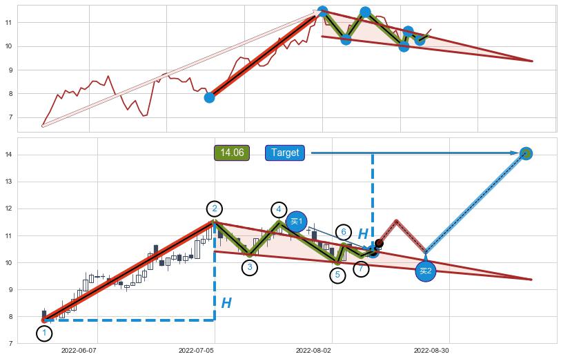 ➣ 【已确认突破】降🚩楔型 起点:2022-05-24,突破点:2022-08-11,形态共57交易日