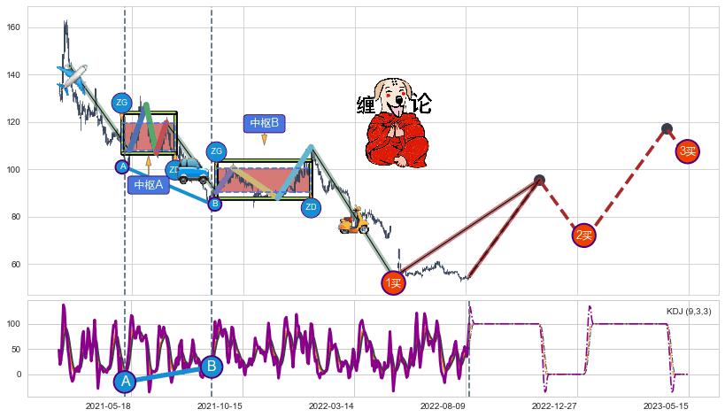 ➣ 【已完成】缠论 起点:2021-02-23,完成第1中枢A,完成第2中枢B,终点:2022-05-09,缠论共360交易日