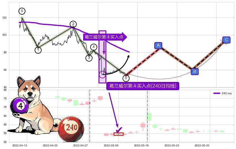 ➢ 收盘价(2022-05-24: 55.41 )→再次回踩→第一根k线高点(2022-05-13: 61.20 )