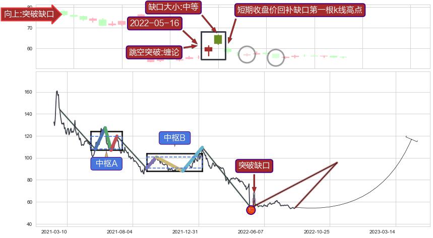 ➢ 突破缺口形成后,后续k已经超过14根,跳空突破缠论买卖点关键点后, 出现【完全回踩】迹象,短期收盘价回补缺口第一根k线高点