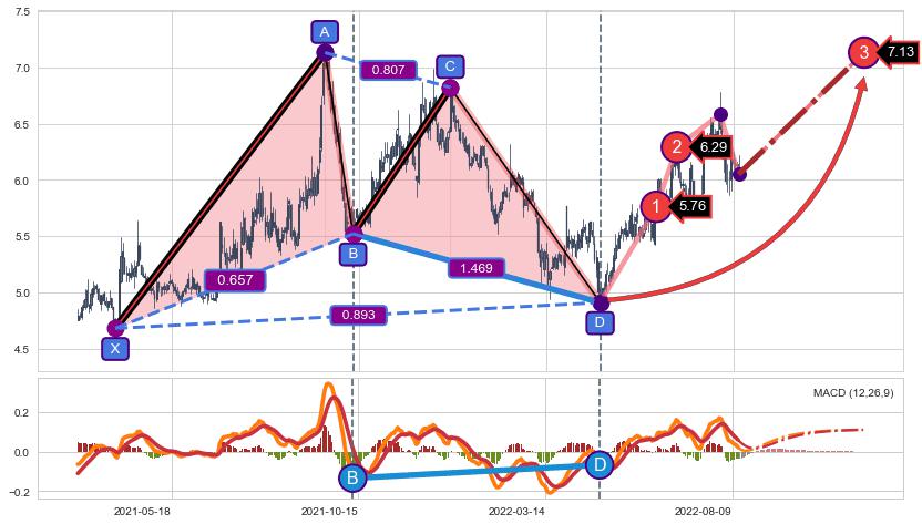 ➢ AI预测: 假定反转继续,第❸价格目标位置(2022-11-15, 7.13)