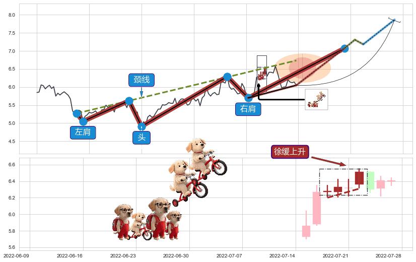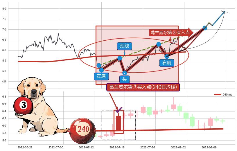 🍖 长线趋势跟踪组合短线均值回复[强支撑信号]2022-03-15-2022-08-02上升趋势依然成立(上涨趋势跟踪依然可行),短线价格略微下行回调(均值回复猜想),即将接近趋势提供的未破位的支撑价格:6.06。