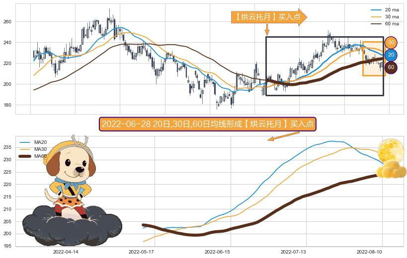 ⚀ 2022-05-12日-2022-08-11日显现 20日-30日-60日均线 【烘云托月】买入点 看多信号,后市看涨,买入