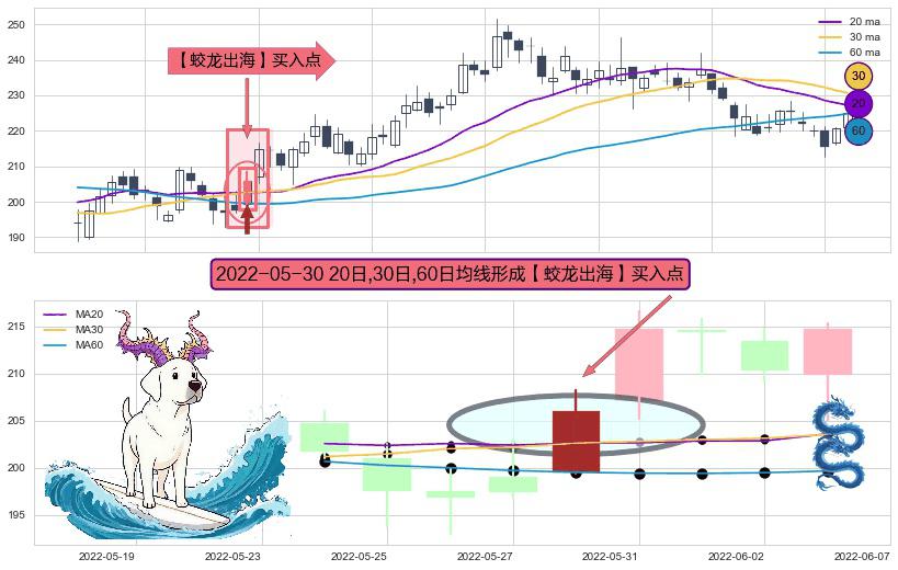 ⚀ 2022-05-30日显现 20日-30日-60日均线 【蛟龙出海】买入点 看多信号,后市看涨,买入