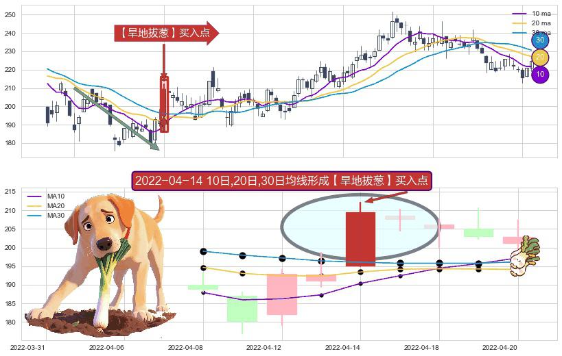 ⚀ 2022-04-14日显现 10日-20日-30日均线 【旱地拔葱】买入点 看多信号,后市看涨,买入