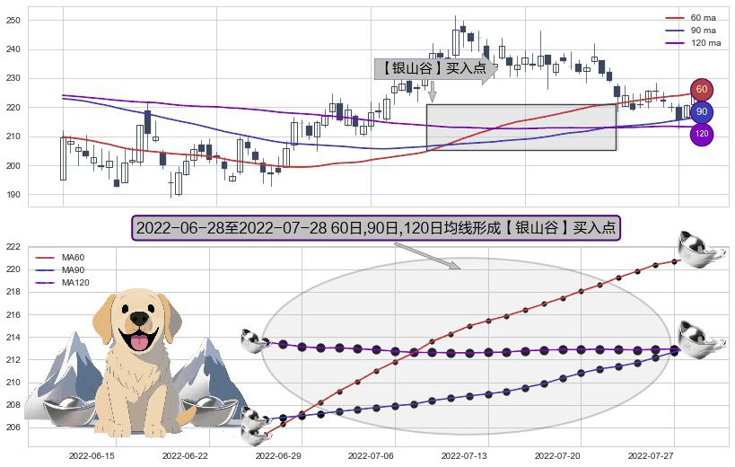 ⚀ 2022-06-29-日至2022-07-28-日显现 60日-90日-120日均线 【银山谷】买入点 看多信号,后市看涨,买入