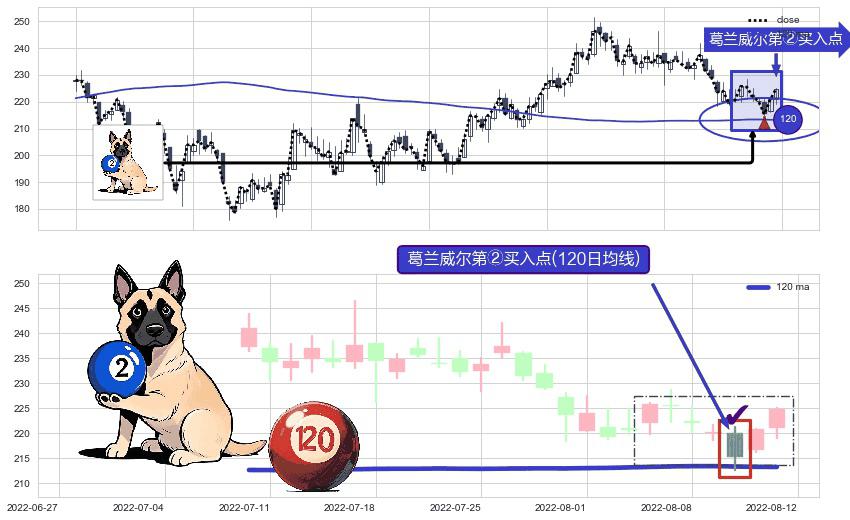 ⚀ 2022-08-10-日显现 葛兰威尔均线 120日均线 第②买入点 上升趋势的中继信号,后市看涨,买进信号