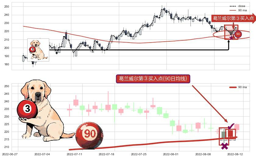 ⚀ 2022-08-11-日显现 葛兰威尔均线 90日均线 第③买入点 上升趋势的中继信号,后市看涨,买进信号