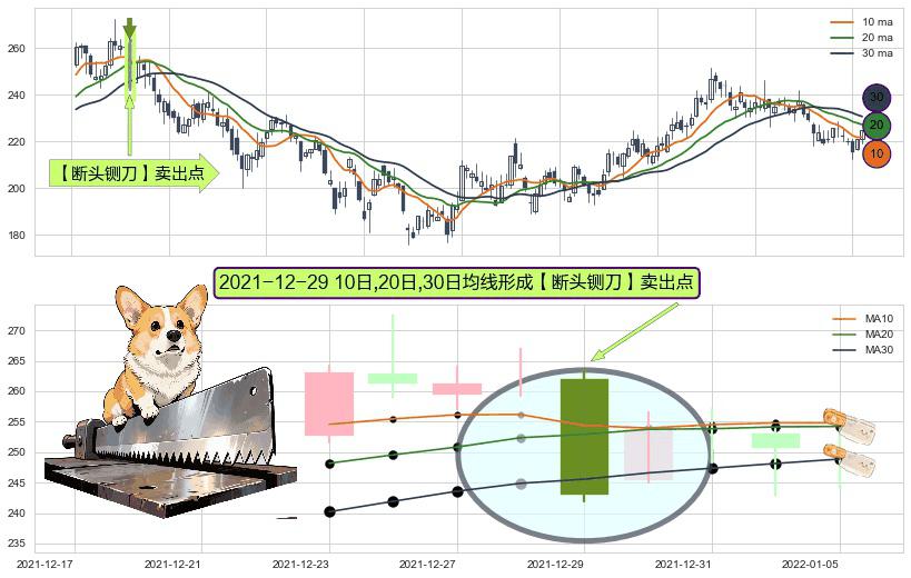 ⚀ 2021-12-29日显现 10日-20日-30日均线 【断头铡刀】卖出点 看空信号,后市看跌,卖出