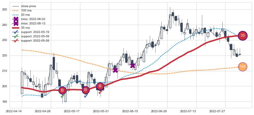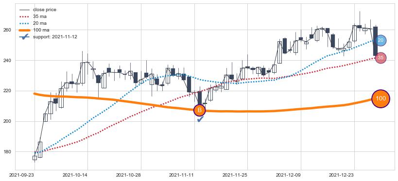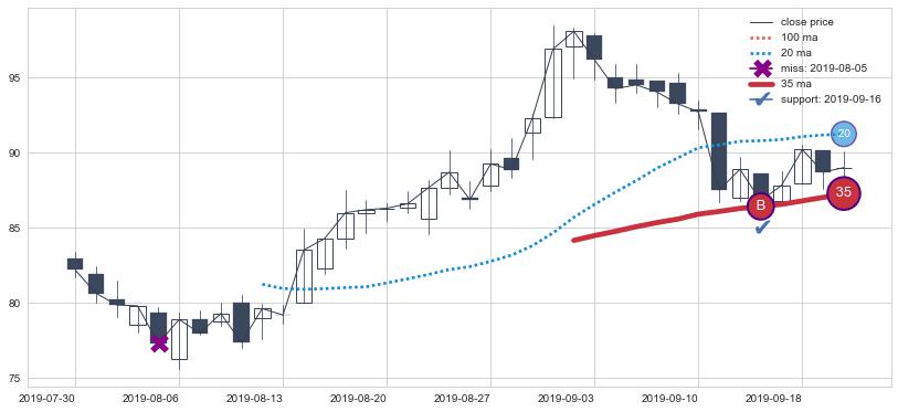 ⚄ 价格在均线获取支撑后再次向上反弹了【极短】距离, 第②买入点 支撑效果【等待验证】