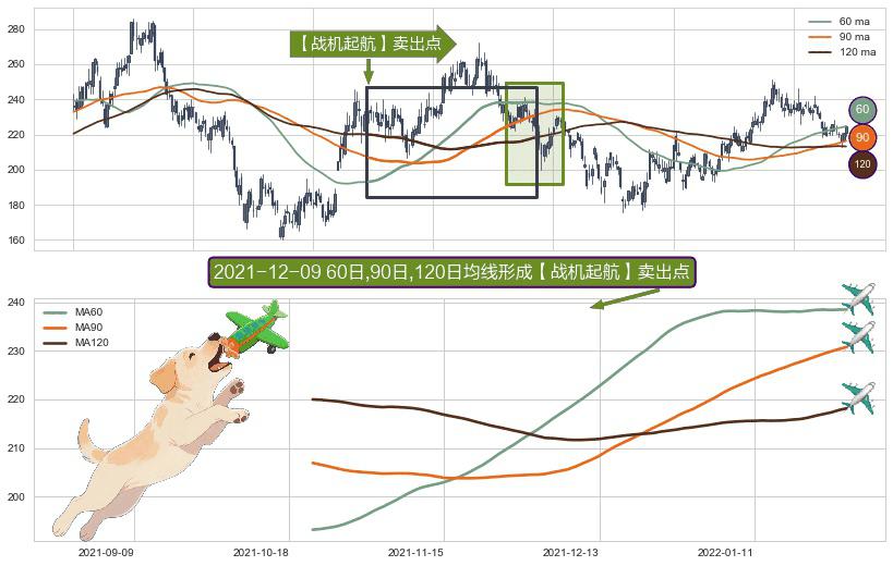 ⚀ 2021-10-21日-2022-01-27日显现 60日-90日-120日均线 【战机起航】卖出点 看空信号,后市看跌,卖出
