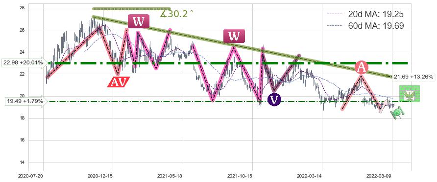 ➣ 【已确认突破】最后价格:19.15与最小【整理】第一目标价格→(2022-08-25: 16.83 )相较: 下跌空间【中等】