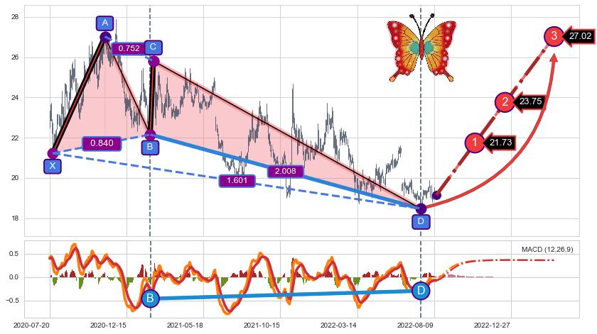 ➣ 已完成【蝴蝶】形态起点X: 2020-07-24, 终点D: 2022-07-15, 共480交易日