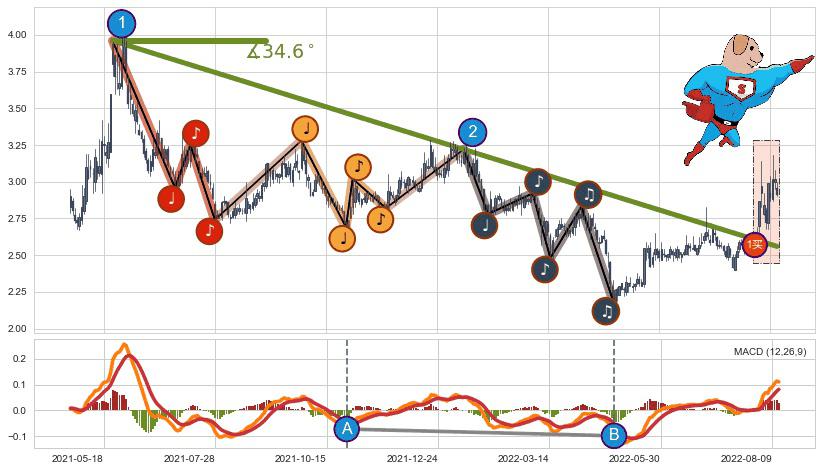 ➢ 2022-08-03到达第❶价格目标位置2.970