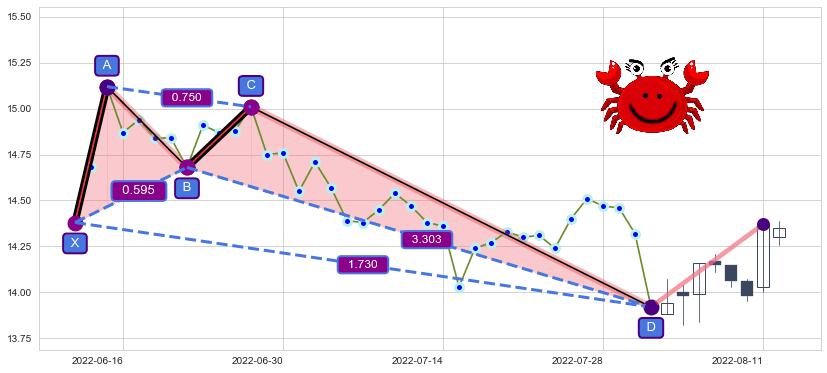 ➣ 已完成【螃蟹】形态起点X: 2022-06-13, 终点D: 2022-08-02, 共37交易日