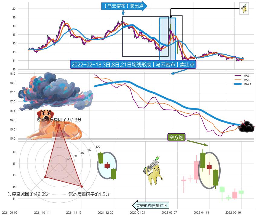 | 2 🅚:【战机起航】卖出点 ➕ ☯️:缠论中枢点下降缠中枢B破位后距离1买距离较远,随后猜想后续持续下跌(趋势跟踪) ☞ 看空信号 ⇥ 【均线】交织【图形】⇥ 综合量化分数: 35 | > |