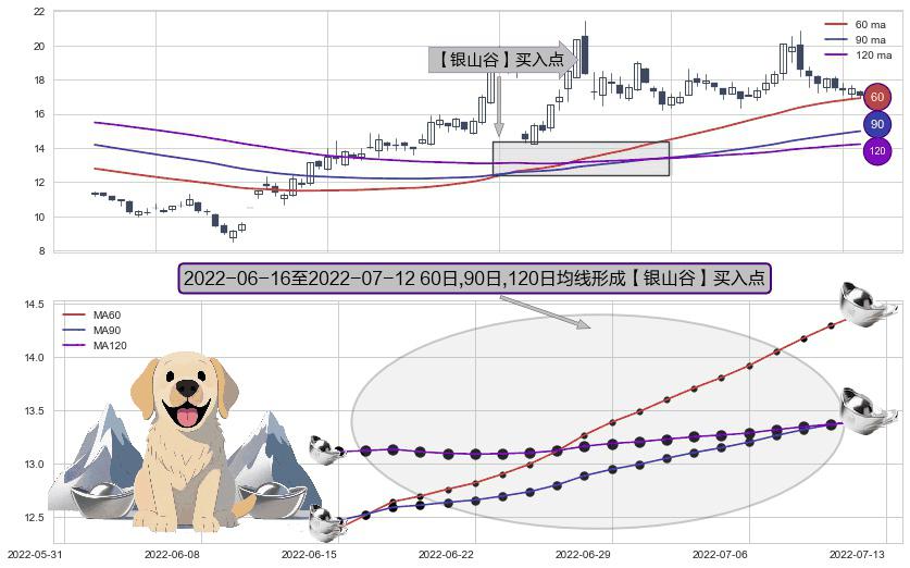 ⚀ 2022-06-17-日至2022-07-12-日显现 60日-90日-120日均线 【银山谷】买入点 看多信号,后市看涨,买入