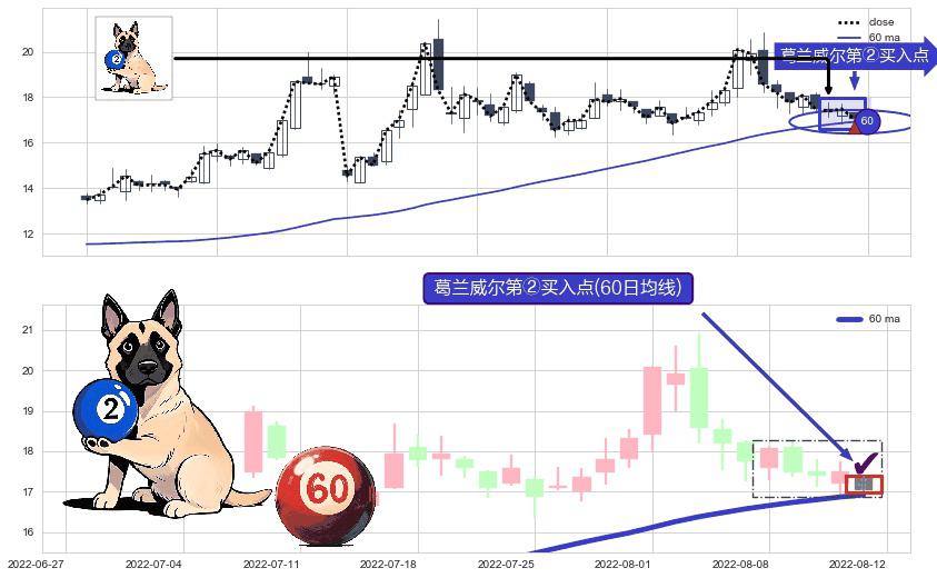 ⚀ 2022-08-12-日显现 葛兰威尔均线 60日均线 第②买入点 上升趋势的中继信号,后市看涨,买进信号