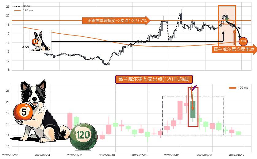 ⚀ 2022-08-03-日显现 葛兰威尔均线 120日均线 第⑤卖出点 上升趋势均值回复的短线回落信号,后市看跌,卖出信号
