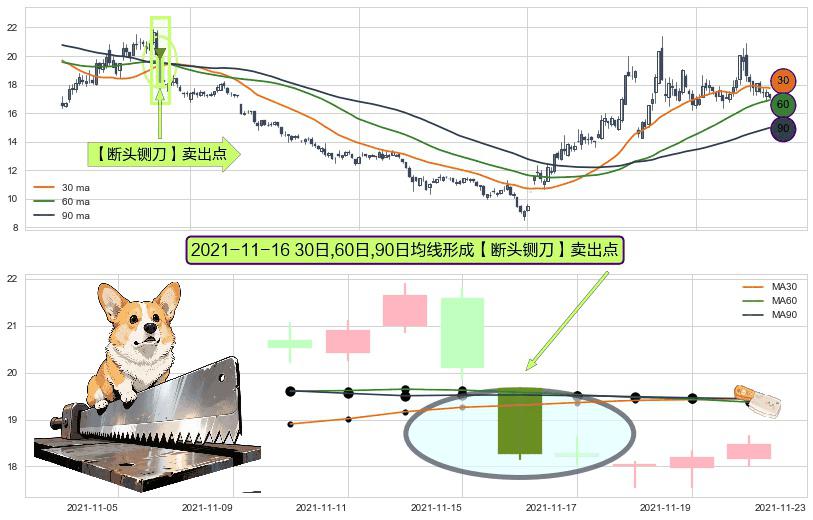 ⚀ 2021-11-16日显现 30日-60日-90日均线 【断头铡刀】卖出点 看空信号,后市看跌,卖出