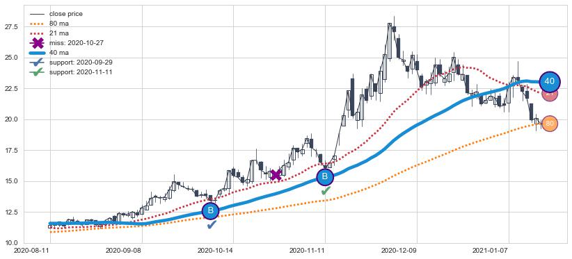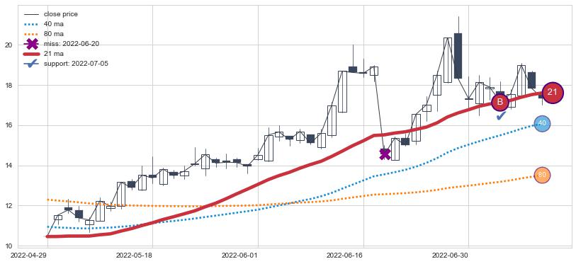 ⚄ 价格在均线获取支撑后再次向上反弹了【极短】距离, 第②买入点 支撑效果【等待验证】