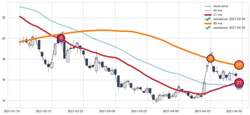 ⚁ MA20和MA30走势平行,且始终保持在短距离内,MA60始终在短中期均线上方,与短中期均线保持一定的距离,微微下行