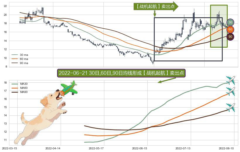 ⚀ 2022-04-29日-2022-08-05日显现 30日-60日-90日均线 【战机起航】卖出点 看空信号,后市看跌,卖出
