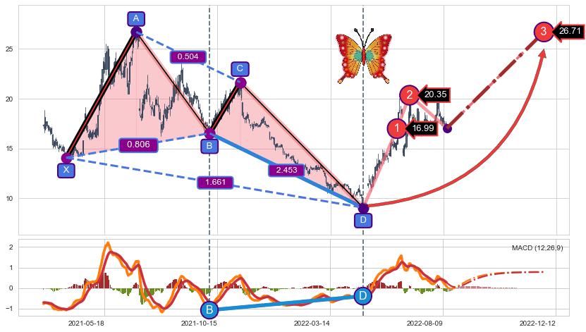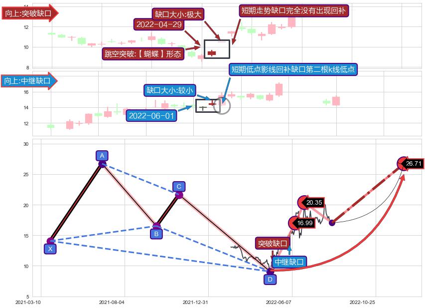 ➣ 已完成【蝴蝶】形态起点X: 2021-03-25, 终点D: 2022-04-26, 共264交易日
