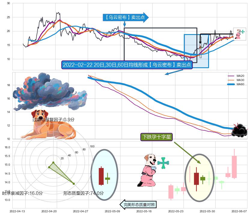 | 5 🅚:绵绵阴跌|下跌不止 ➕ 🎢:【乌云密布】卖出点均线组合卖出点信号形成后,猜想后续下行持续,下跌加速(趋势跟踪) ☞ 看空信号 ⇥ 【均线】交织【🅚线】⇥ 综合量化分数: 48 | > |