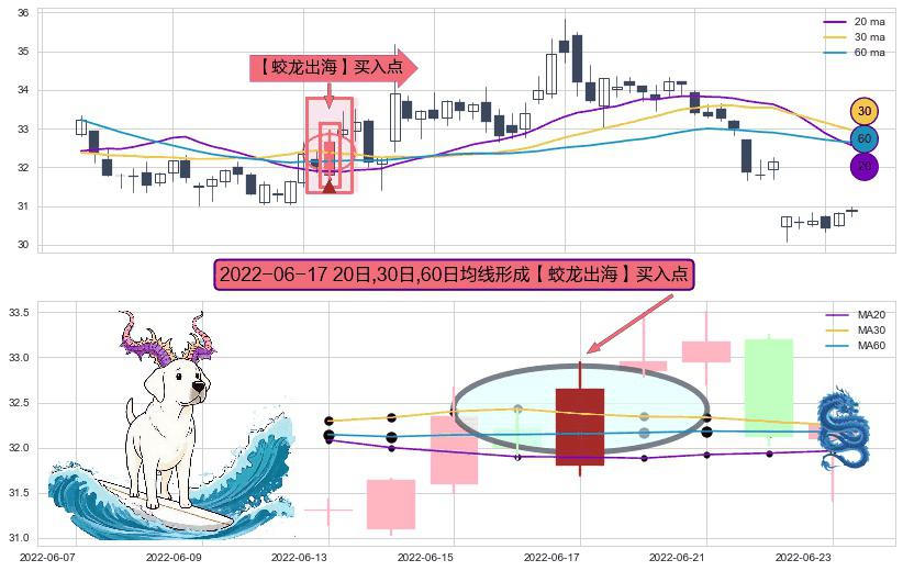 ⚀ 2022-06-17日显现 20日-30日-60日均线 【蛟龙出海】买入点 看多信号,后市看涨,买入