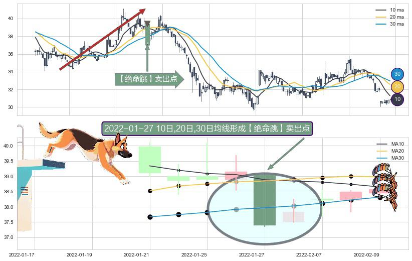 ⚀ 2022-01-27日显现 10日-20日-30日均线 【绝命跳】卖出点 看空信号,后市看跌,卖出