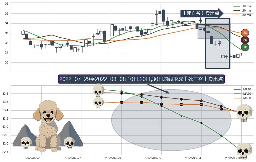 ⚀ 2022-08-01-日至2022-08-08-日显现 10日-20日-30日均线 【死亡谷】卖出点 看空信号,后市看跌,卖出