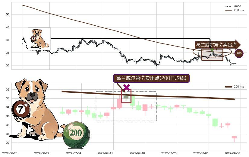 ⚀ 2022-07-13-日显现 葛兰威尔均线 200日均线 第⑦卖出点 下降趋势的中继信号,后市看跌,卖出信号