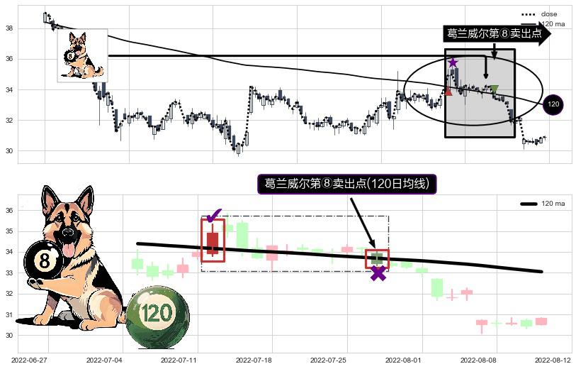 ⚀ 2022-07-27-日显现 葛兰威尔均线 120日均线 第⑧卖出点 下降趋势的中继信号,后市看跌,卖出信号