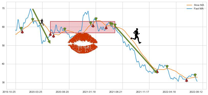 2021-05-11至2021-12-29 慢线与快线呈空头排列, 慢线与快线接触少,无缠绕