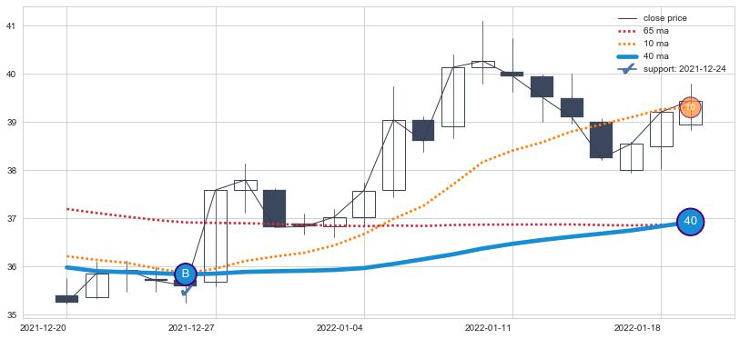 ⚁ MA3和MA8走势平行,且始终保持在短距离内,MA21始终在短中期均线上方,与短中期均线保持一定的距离,微微下行