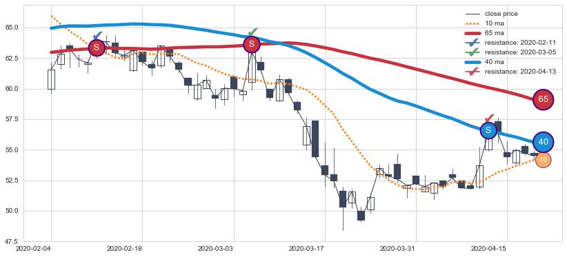 ➢ 最优均线组合共正确确认支撑阻力信号7处,正确确认率 63.64%