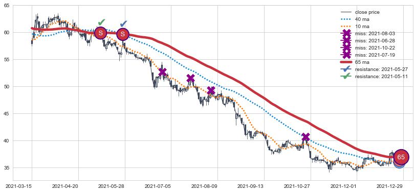 ⚄ 价格在均线遇到阻力后已再次向下回落了【较长】距离, 第⑦卖出点 阻力效果得到【初步确认】