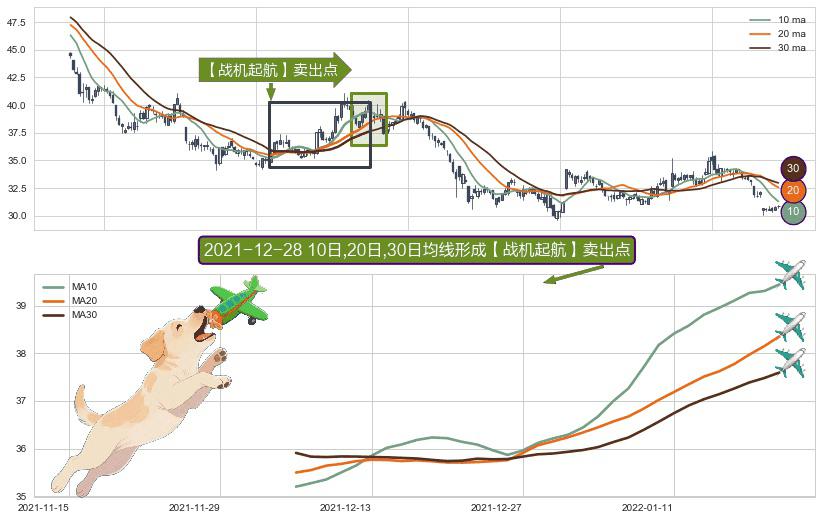 ⚀ 2021-12-06日-2022-01-20日显现 10日-20日-30日均线 【战机起航】卖出点 看空信号,后市看跌,卖出