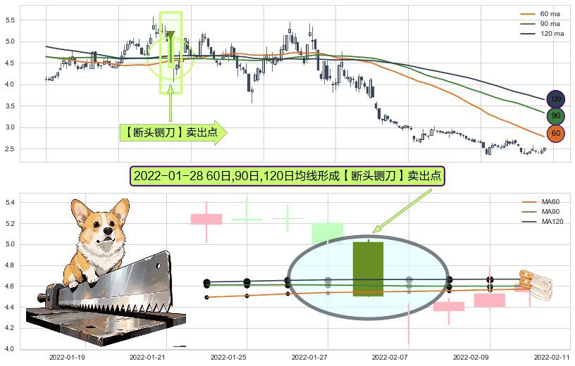 形态多维评估: ⚀ 2022-01-28日显现 60日-90日-120日均线 【断头铡刀】卖出点 看空信号,后市看跌,卖出