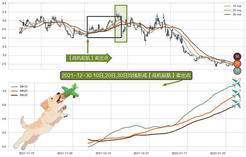 形态多维评估: ⚀ 2021-12-03日-2022-01-27日显现 10日-20日-30日均线 【战机起航】卖出点 看空信号,后市看跌,卖出