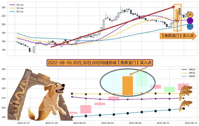 形态多维评估: ⚀ 2022-08-05日显现 20日-30日-60日均线 【鱼跃龙门】买入点 看多信号,后市看涨,买入