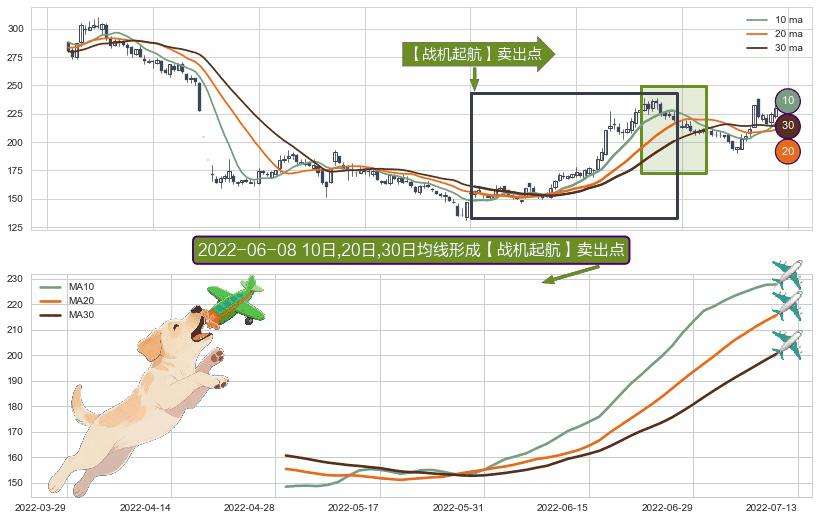 形态多维评估: ⚀ 2022-04-29日-2022-07-11日显现 10日-20日-30日均线 【战机起航】卖出点 看空信号,后市看跌,卖出