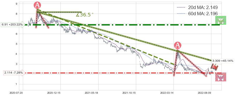 ♘ 阻力价格位6.91,可信任强度94.22%,距离最后交易2022-08-12形成的收盘价格2.280相差 +203.22%