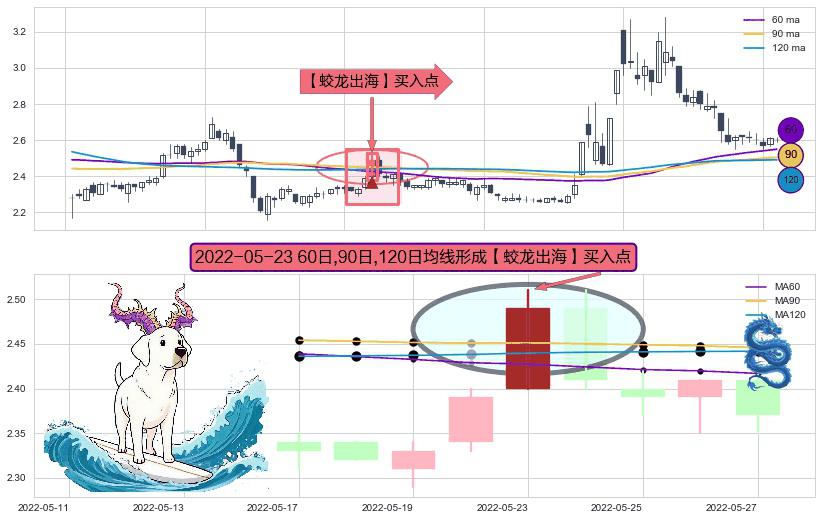 形态多维评估: ⚀ 2022-05-23日显现 60日-90日-120日均线 【蛟龙出海】买入点 看多信号,后市看涨,买入