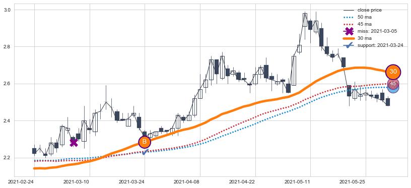 上涨趋势2021-02-24-2021-05-31,均线30确认关键支撑1处