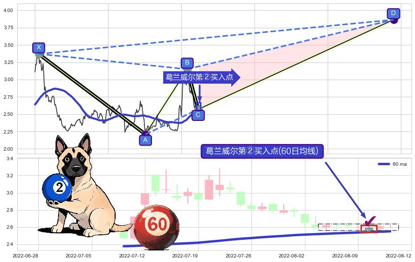 ➣ D点拟合预测价格3.864,距离最后交易收盘价格2.600相差 +48.63%