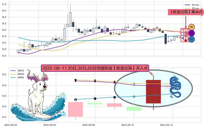 ⚀ 2022-08-11日显现 20日-30日-60日均线 【蛟龙出海】买入点 看多信号,后市看涨,买入