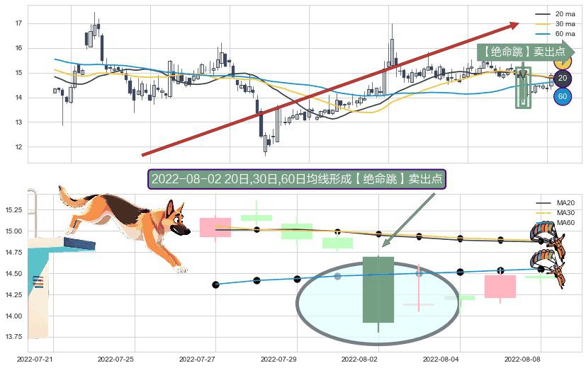 ⚀ 2022-08-02日显现 20日-30日-60日均线 【绝命跳】卖出点 看空信号,后市看跌,卖出