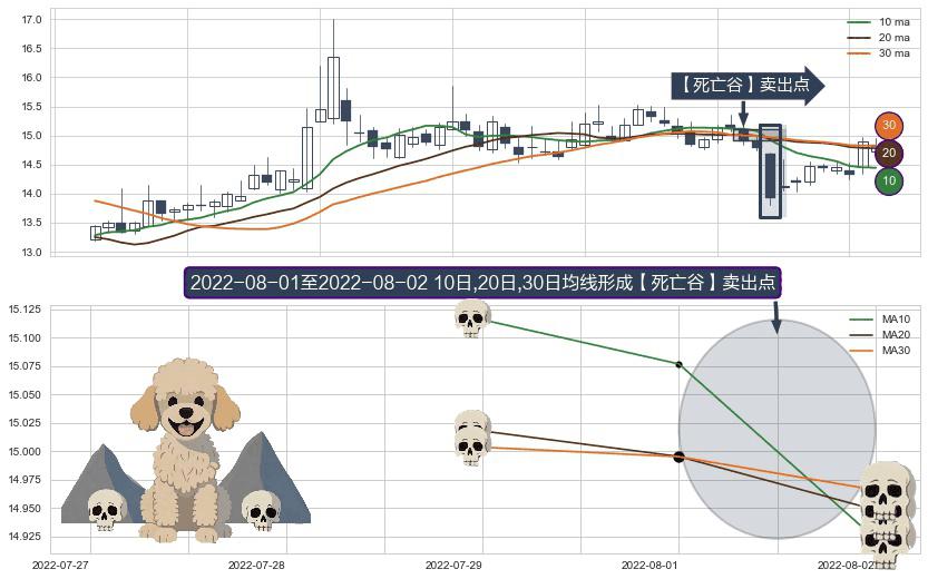 ⚀ 2022-08-02-日至2022-08-02-日显现 10日-20日-30日均线 【死亡谷】卖出点 看空信号,后市看跌,卖出